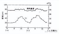 為了改善機組的振動,分別在低壓轉子和發電機進行了平衡,使振動有所改善。但是在運行過程中振動仍不穩定。圖2是5號軸承振動與排汽溫度的關系,當排汽溫度升高時,振動上升。