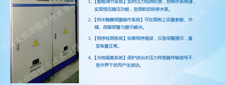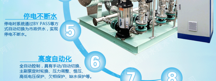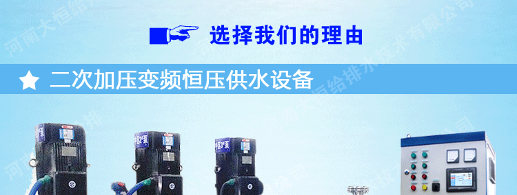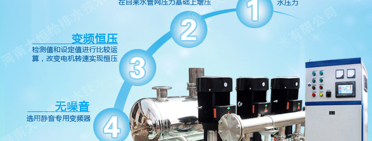 適用于具有自來水管網,需要增高水壓、調節流量的給水系統,可作為城鄉建筑小區、商務樓、賓館等場所二次加壓供水使用,產品具有外形美觀,安裝簡捷,節資節能,變頻控制,選材嚴格等特點。產品的衛生安全性符合《生活飲用水輸配水設備及防護材料衛生安全評價規范》標準的要求,該產品節能、環保,同時又避免了二次供水污染等特點,是一種理想的二次供水設備。