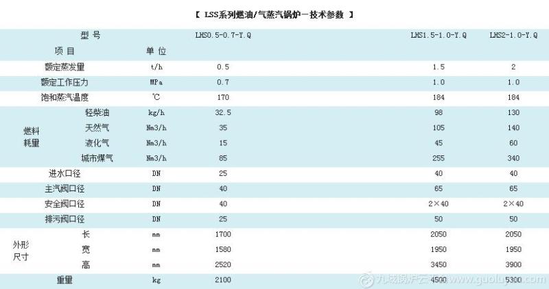 LHS型燃油(氣)鍋爐為立式快裝內燃彎水管鍋爐。燃料由外界氣源進入燃燒器通過自動調節、自動點火功能產生高溫火焰,由爐膽頂部進入爐膽內的密排水管內側,在爐膽下部向折180°進入爐膽與密排水管的夾層間,然后由爐膽下部煙道口折180°進入筒體與包裝層之間的肋片層,煙氣在肋片間傳熱后由上部煙道口離開鍋爐到囪排入大氣。鍋爐配置技術性能良好燃燒器,采用了燃燒自動比例調節,給水自動調節,程序啟停,全自動運行等先進技術,并具有高低水位報警和極低水位、超高汽壓、熄火等自動保護功能。該型鍋爐具有結構緊湊、安全可靠、操作簡便、安裝迅速、污染少、噪音低、效率高等特點。